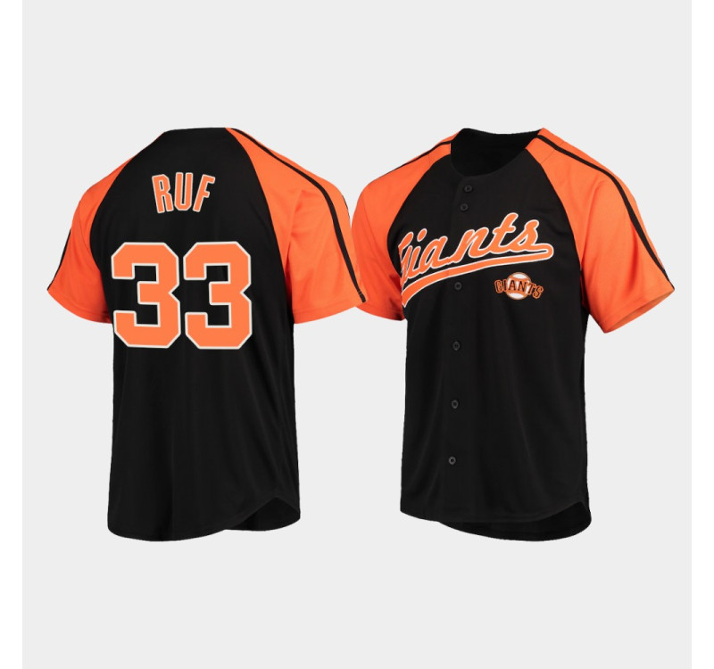 #33 Darin Ruf Men's Black Button-Down Raglan San Francisco Giants Replica Jersey