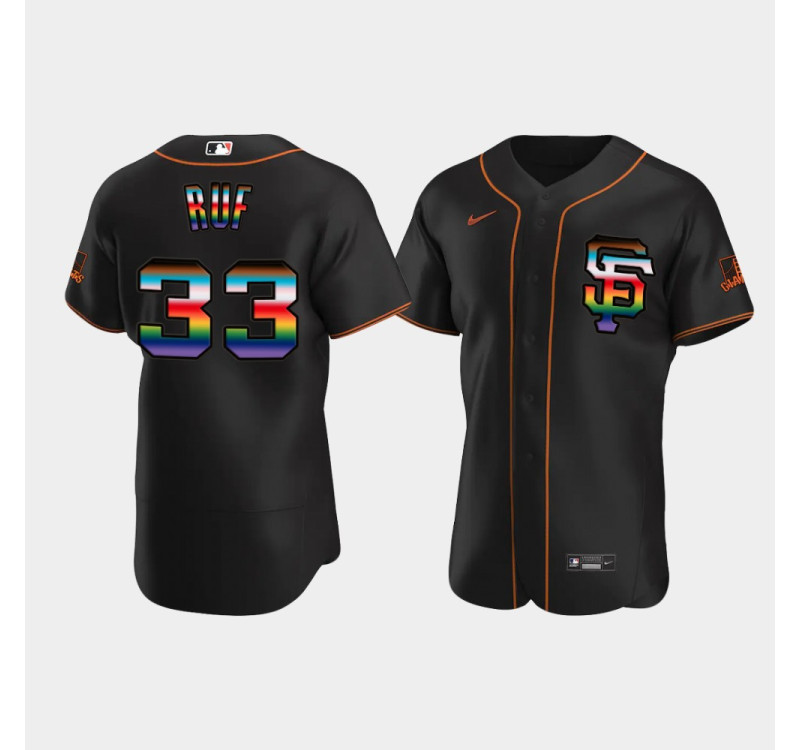 #33 Darin Ruf San Francisco Giants Men's Black On-Field 2022 Pride Month Edition Jersey