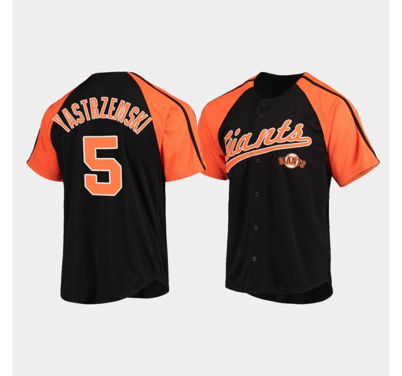 #5 Mike Yastrzemski Men's Black Button-Down Raglan San Francisco Giants Replica Jersey
