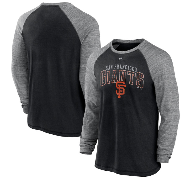 Adult Men's Men's Heathered Gray/Black San Francisco Giants Dedication Space-Dye Raglan Long Sleeve baseball T-shirt