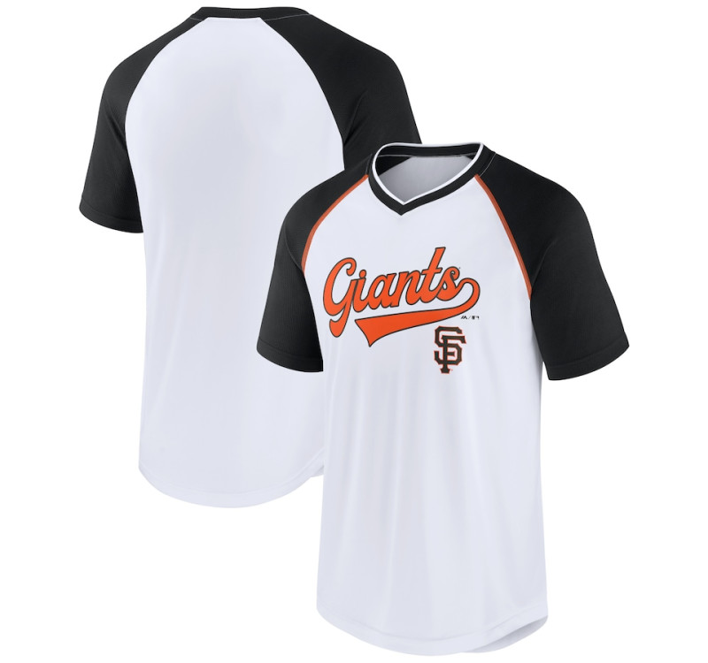 Adult Men's Men's White/Black San Francisco Giants Show The Leather Raglan V-Neck baseball T-shirt