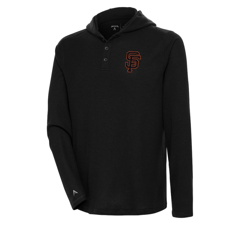 Elevate your game day outfit by grabbing this San Francisco Giants Strong Hold Long Sleeve Henley Hoodie T-Shirt from Antigua. This top features a thermal waffle knit fabric and hood to provide you with lightweight warmth year-round. The embroidered San Francisco Giants graphics will showcase your pride, ensuring everyone knows where your allegiance lies.