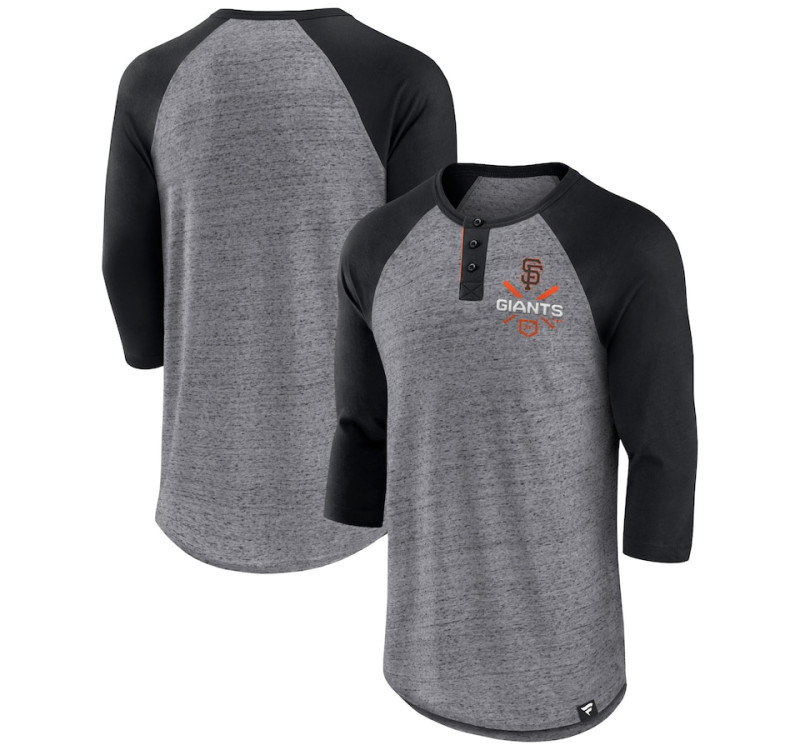 Adult Men's San Francisco Giants Iconic Above Heat Speckled Raglan Henley 3/4 Sleeve baseball T-shirt - Heathered Gray/Black