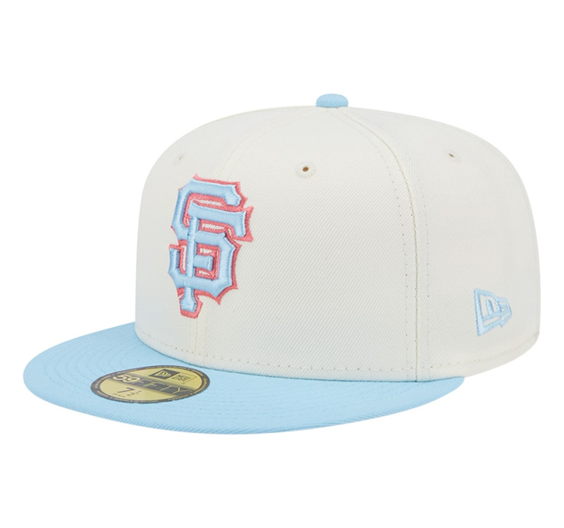 Bring some fresh Spring Color to your San Francisco Giants headwear with this 59FIFTY hat from New Era. Its two-tone design features the San Francisco Giants logo in pastel hues that coordinate with the contrasting visor. The fitted construction also ensures you get the perfect fit.