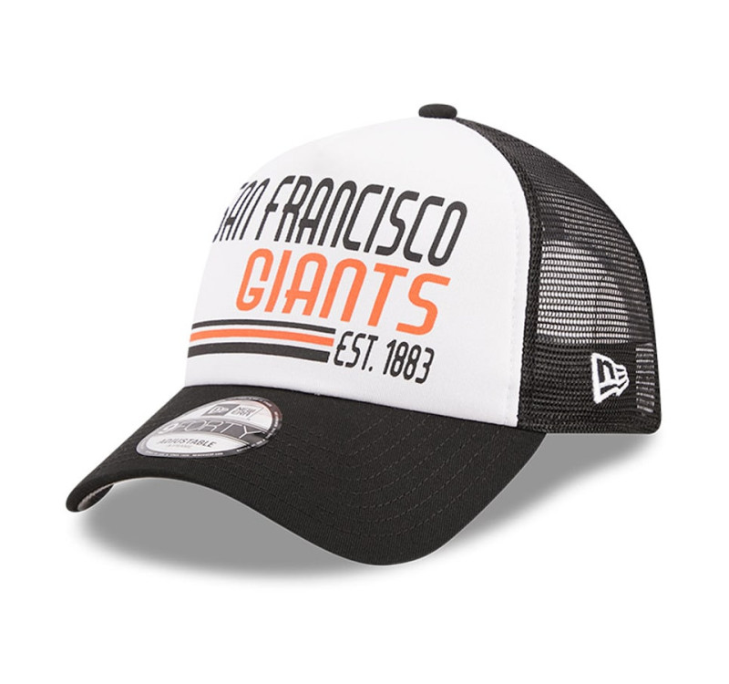 Adult Men's San Francisco Giants New Era Stacked A-Frame Trucker 9FORTY Adjustable Hat - White/Black