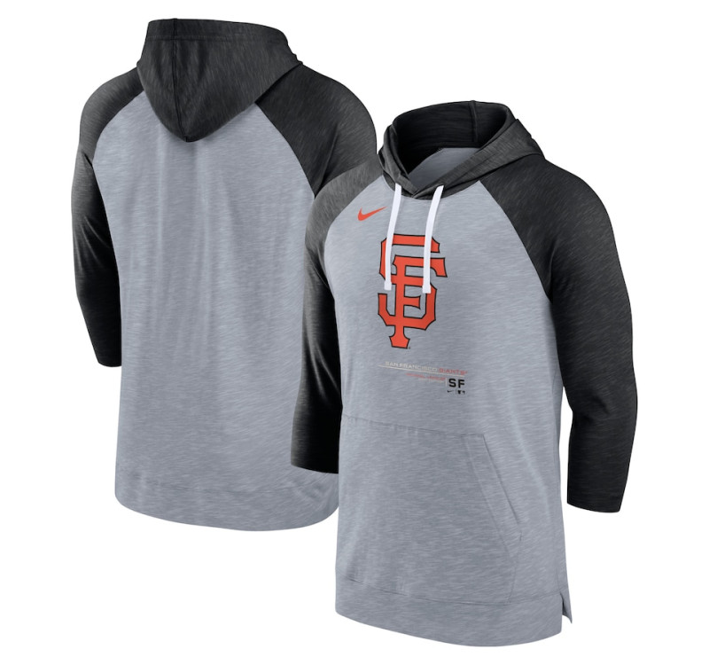 Adult Men's San Francisco Giants Baseball Raglan 3/4-Sleeve Pullover baseball Hoodie - Heather Gray/Heather Black