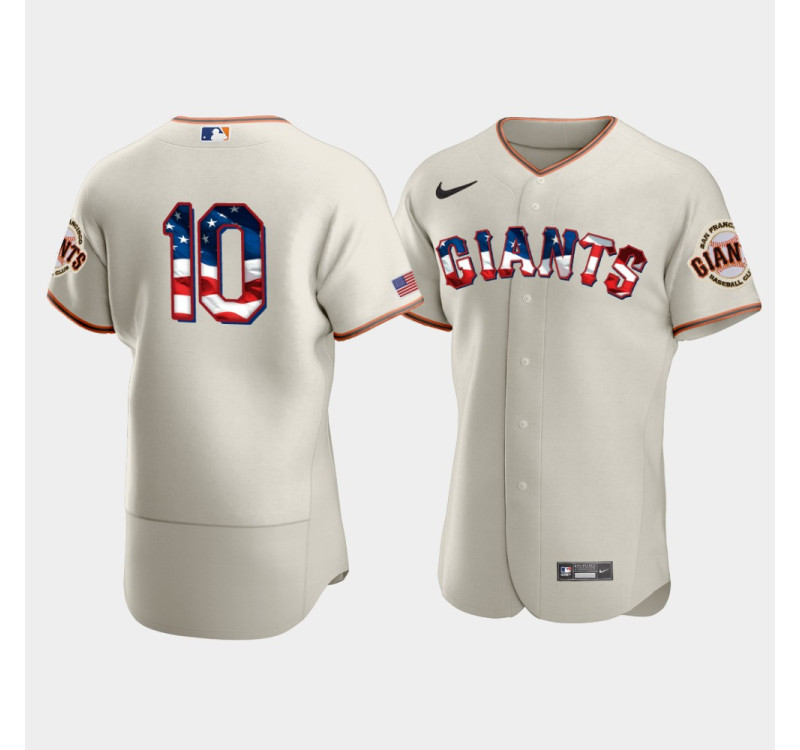 Men's San Francisco Giants #10 Evan Longoria Cream 4th of July 2020 Stars & Stripes Jersey