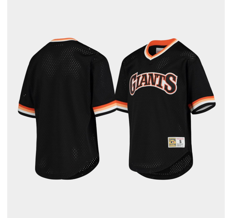 Youth San Francisco Giants Cooperstown Collection Mesh Wordmark V-Neck Black Mitchell & Ness Jersey
